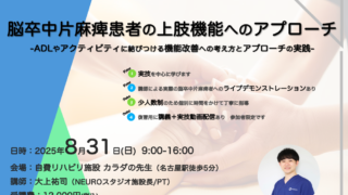 【名古屋勉強会】脳卒中片麻痺患者の上肢へのアプローチ〜ADLやアクティビティに結びつける機能改善への考え方とアプローチの実践〜【8月31日】