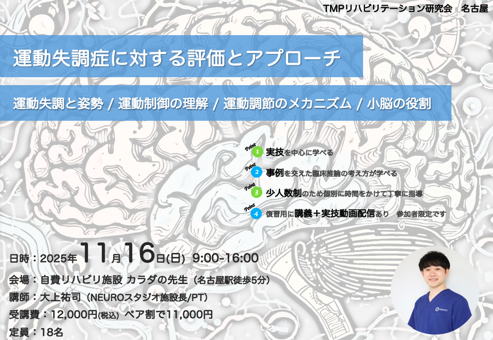 【名古屋勉強会】運動失調症に対する評価とアプローチ【11月16日】