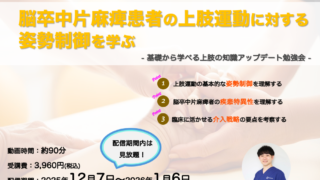 【動画配信セミナー】脳卒中片麻痺患者の上肢運動に対する姿勢制御を学ぶ【12/7より1ヶ月間見放題】